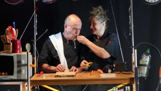 Un duo de cuistots joueurs et musiciens. Une batterie de cuisine sonore et sonorisée. Des mots, des chants, des onomatopées, du mouvement… Sur un établi de « cuisine » avec ustensiles et ingrédients, Valérie Capdepont et Erik Baron vous concoctent un spectacle théâtral et musical pour les tout petits sur la thématique de la cuisine et des aliments. L’ instrumentarium de la recette musicale est composé