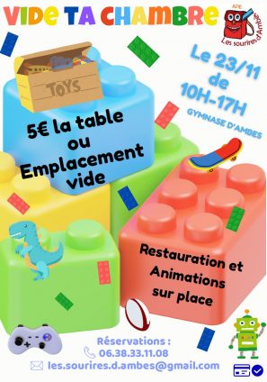 L’APE Les Sourires d’Ambès organise son grand événement “Vide ta chambre” le 23 novembre, de 10h à 17h, au gymnase d’Ambès.